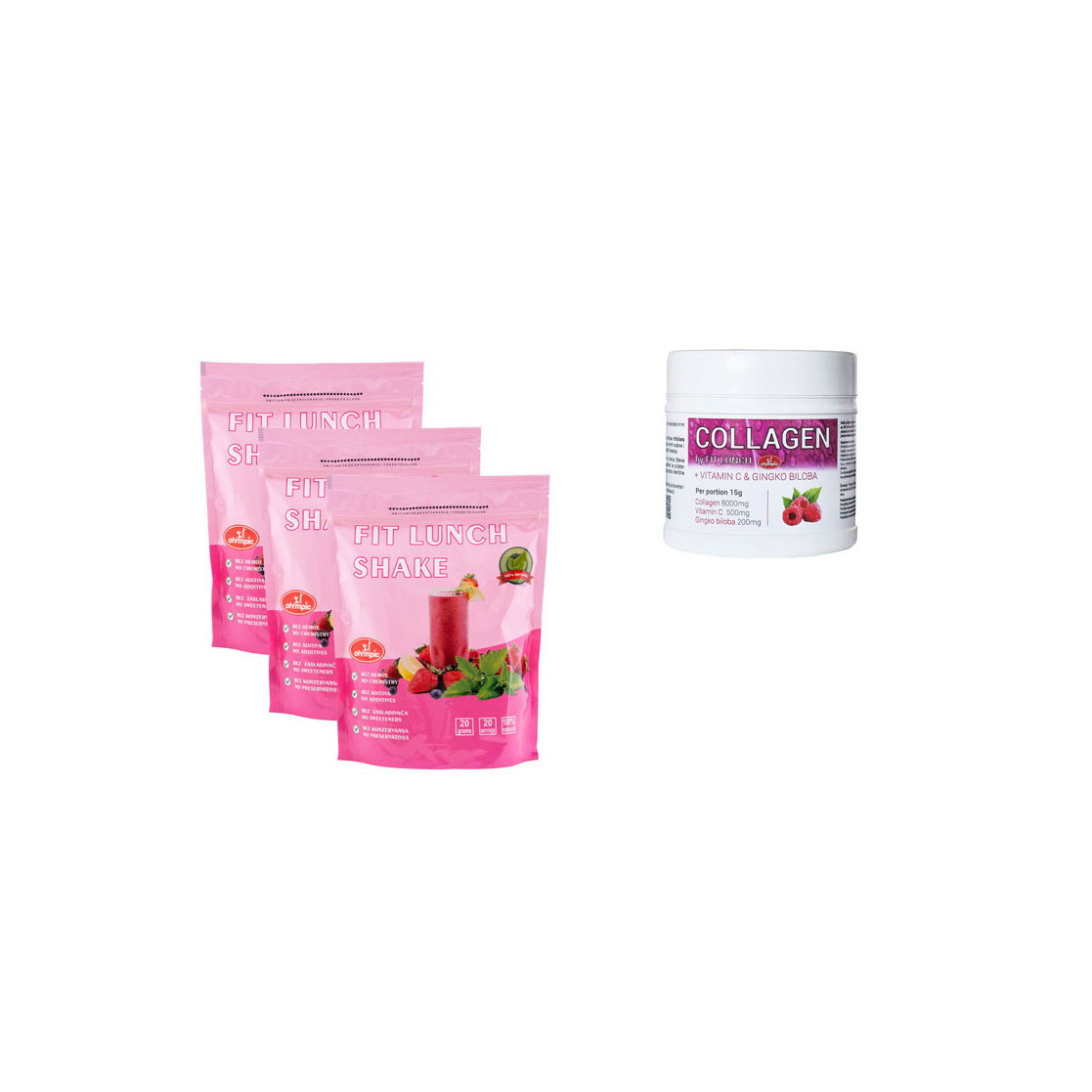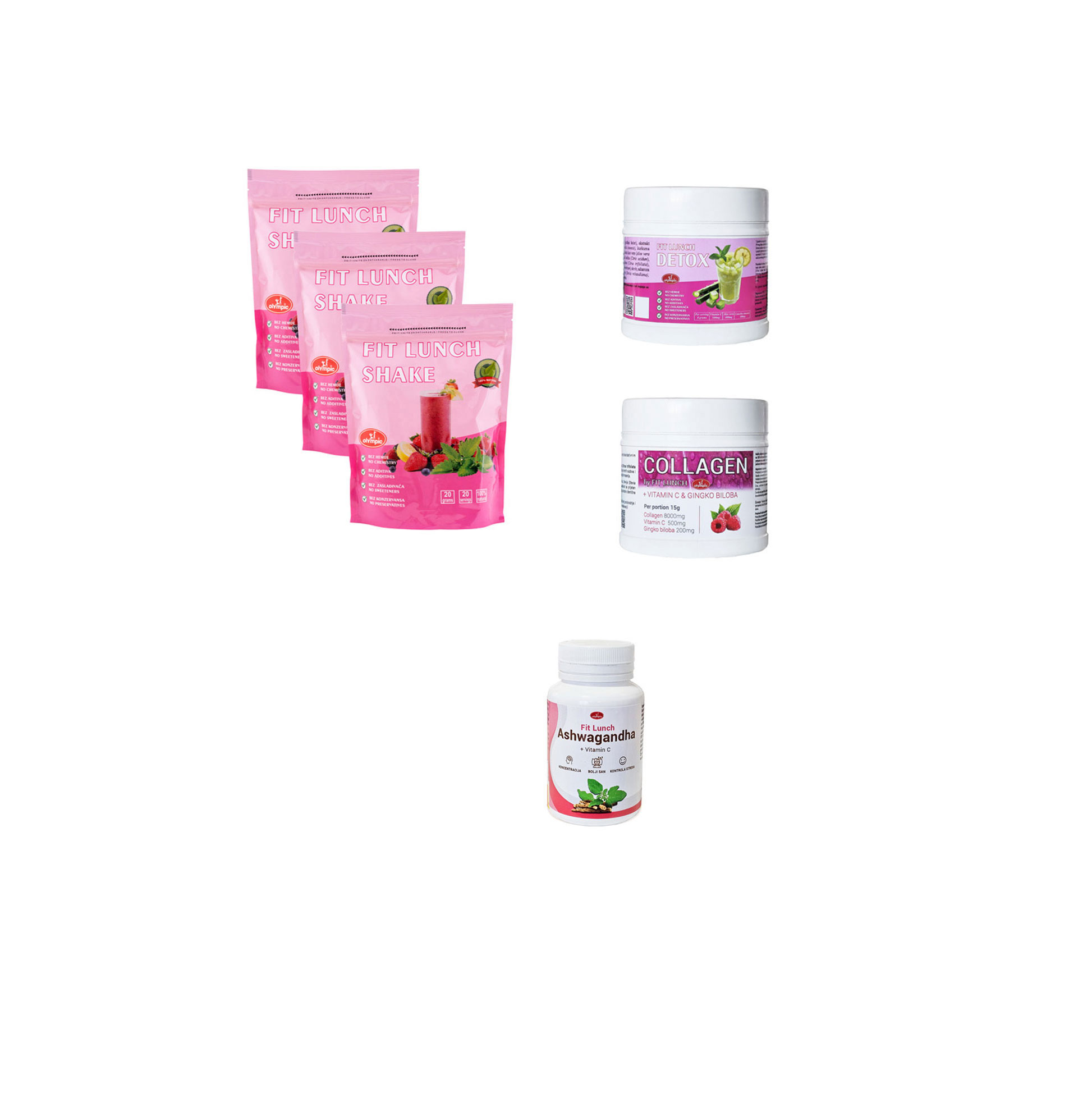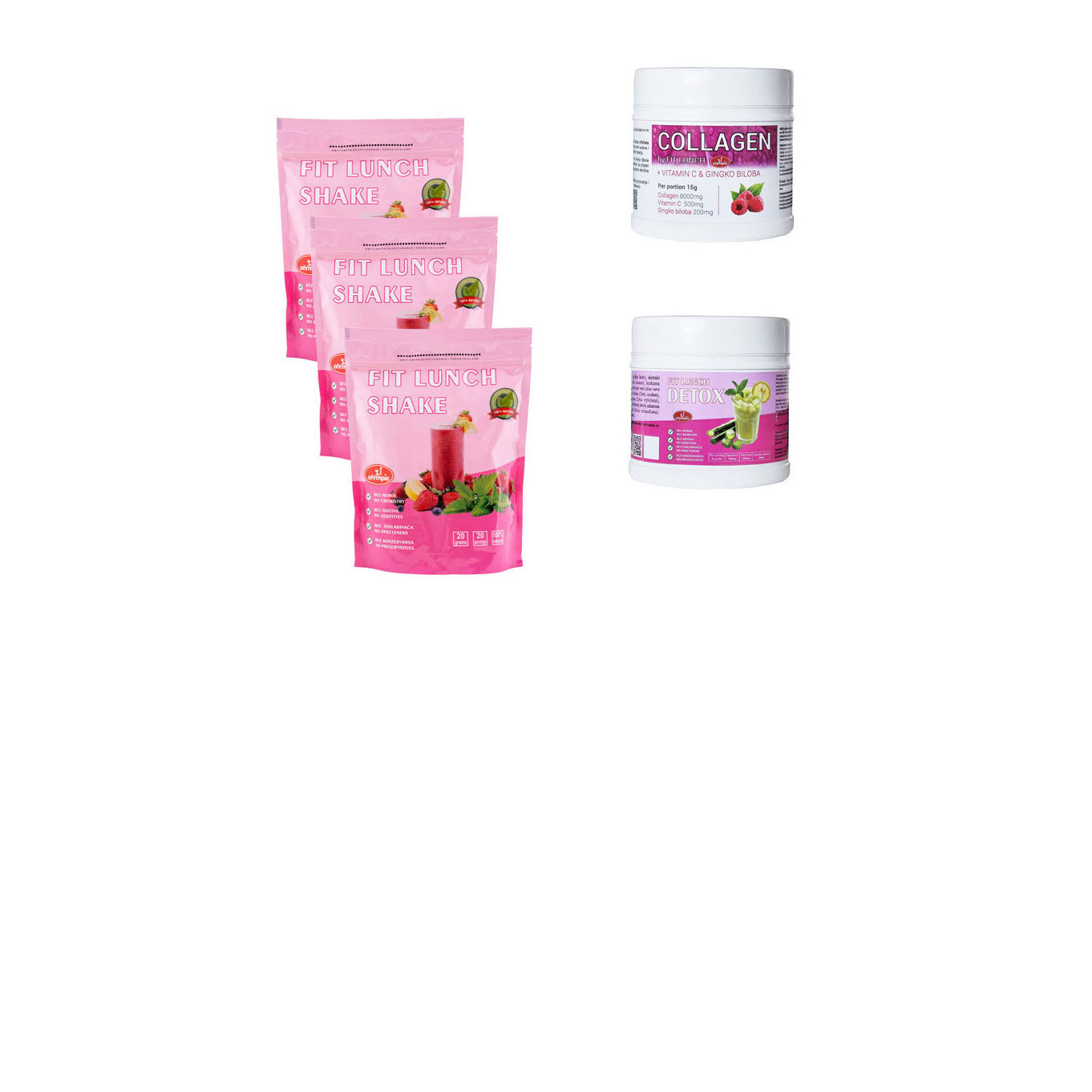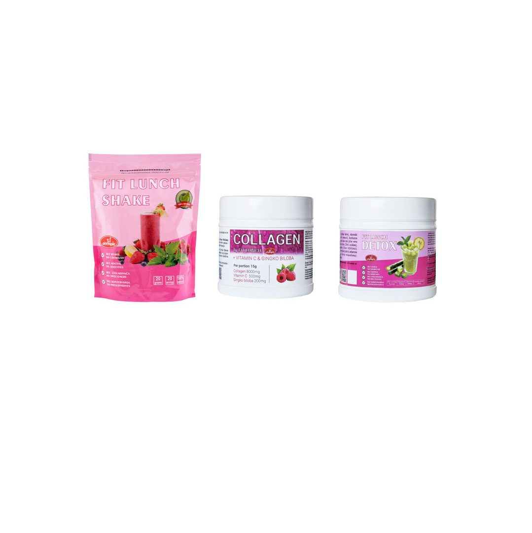 Za vitku liniju zaduženi su Fit Lunch šejk i Detox, a za lepu kožu, kosu, nokte, kao i zdrave zglobove, zadužen je KOLAGEN + Vitmin C & Gingko biloba.